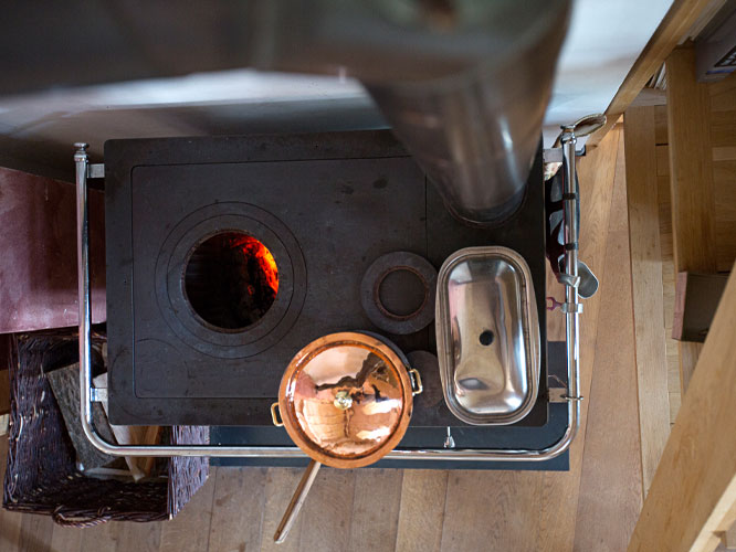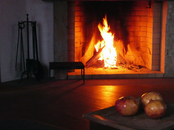 Die Herzkammer verfügt über einen offenen Kamin, der abends für eine wohlige, romantische Stimmung sorgt.