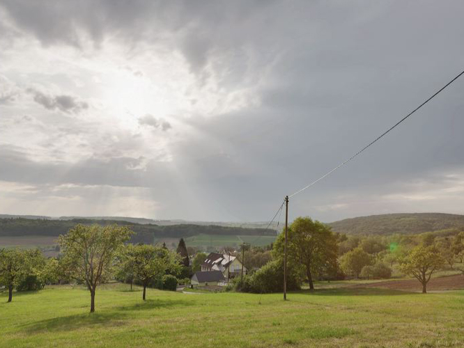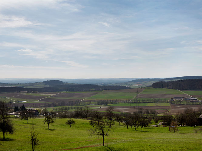 welligen Streuobstwiesen und Feldern, in unmittelbarer Waldnähe. Hier kann man in völliger Ruhe