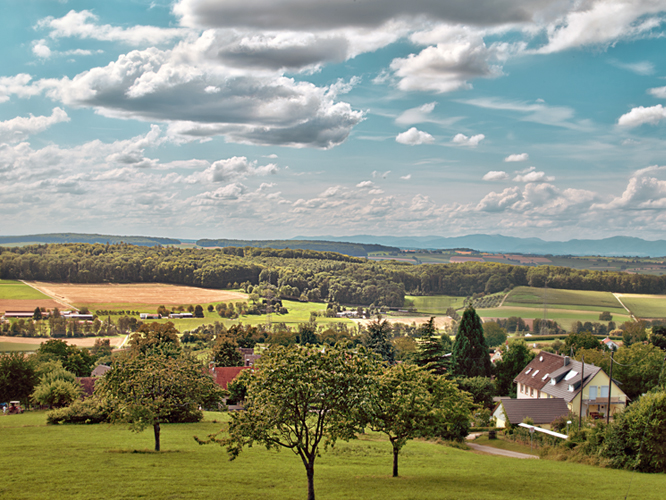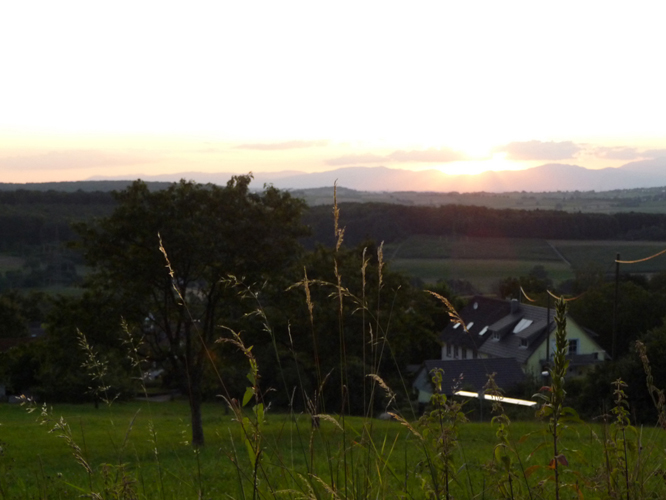 Die Burgundische Pforte zwischen Jura und Vogesen steht klar wie eine Kulisse vor dem Fenster, bei